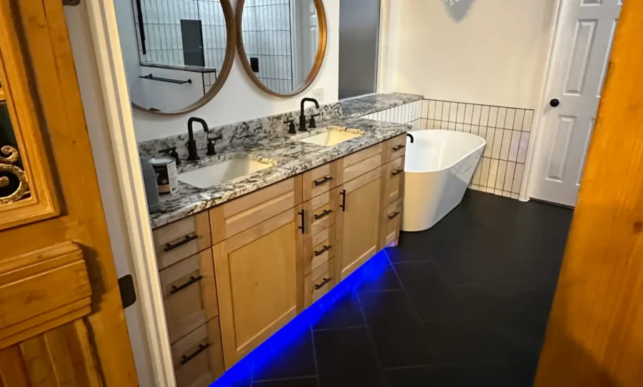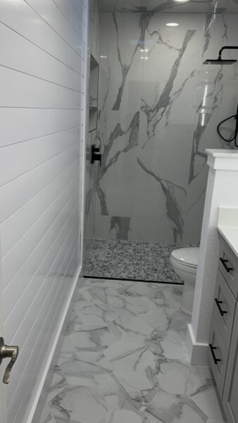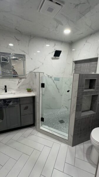Walk-in showers, tub-to-shower conversions, tile surrounds, vanities, and full bathroom remodels.